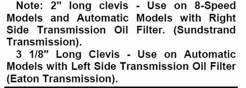 The long clevis at the lift end (front) is for hydro tractors as they have a longer tube to go over the hydro pump. The short clevis is for 8 speeds. The cables are the same length for both.