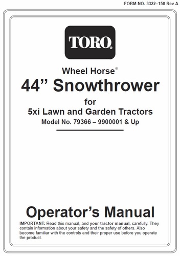 Snowthrower 2000 44in model 79366 Serial 200000001-200999999