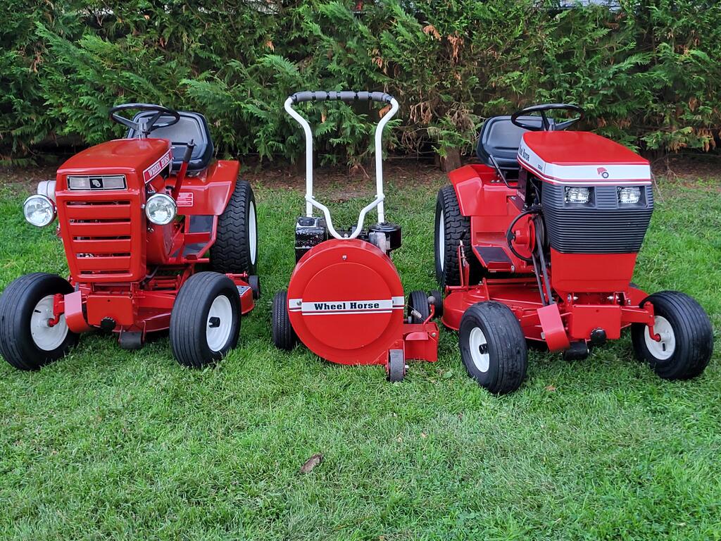 Wheel Horse i dont think made leaf blowers, but, if they did.....this would be it!!!! Up for sale Is a "driver quality" C-100 and a 308-8. I fully built both of them. Had alot of fun along the way. Both run and operate as they should. Nothing original, all made from MP scores over the years. I am fully aware incorrect deck is on the 308. Fully aware tires are incorrect on c-100, again whatever i bought was local, over time. If your looking for factory spec tractor, these aren't for you. These were both used maybe a half dozen times each for lawn cutting, basically to make sure they worked. Unfortunately my ocd wouldn't allow me to put them away dirty so every lawn mowing turned into a 2hr ordeal. Im fully aware it cost more to build than ill make, im not looking to squeeze every dime i can out of a prospective buyer, just fair market value. So looking to get $1200 a piece for tractor's,$250 for leaf blower. If you buy both, ill thrown in the leaf blower, on the arm!!!! Its a beast, wear gloves and ear protection. Feel free to email me any questions, if u wanna leave a #, feel free. i dont mind answering questions like a human being the way we used to. lol