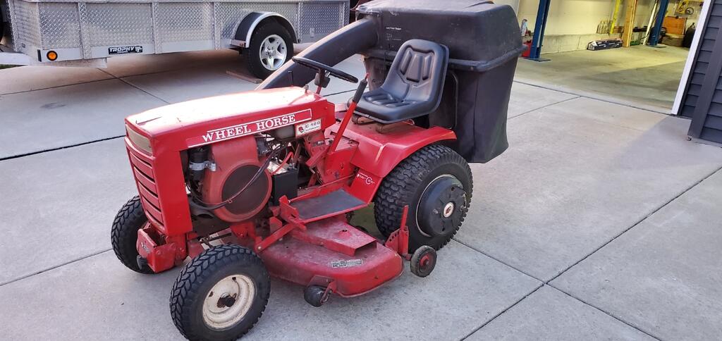 Looking to sell all as a package, but willing to separate. C120 tractor with C100 engine. I can take more pictures if anything specific is requested. The belt for the mower catcher is missing, but I believe everything else is complete. Have tire chains and a few other parts.