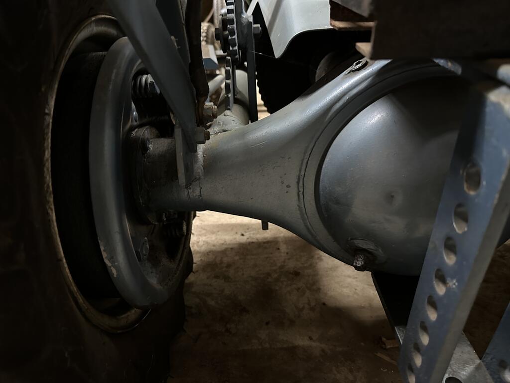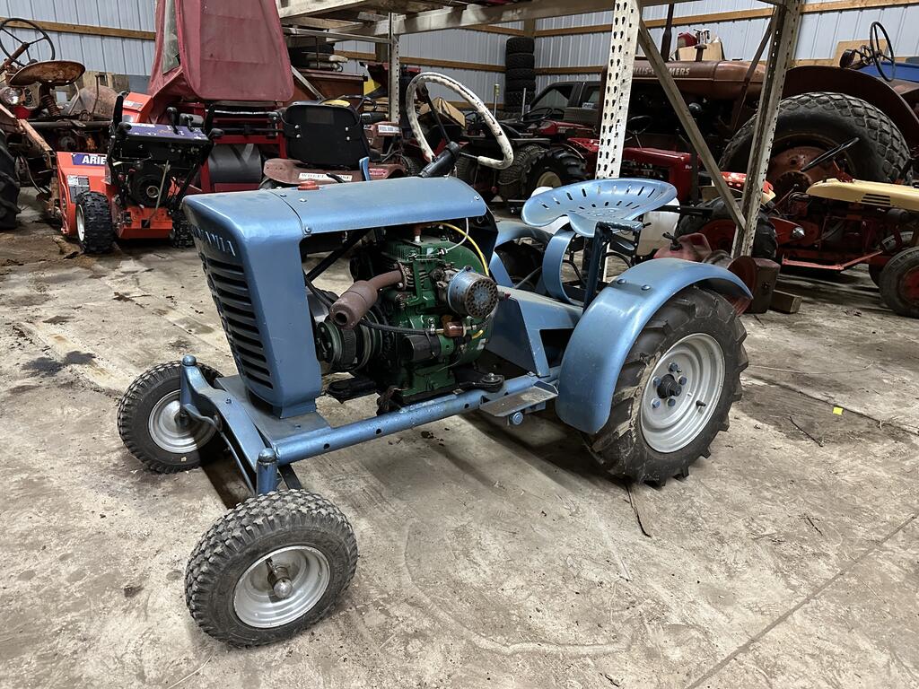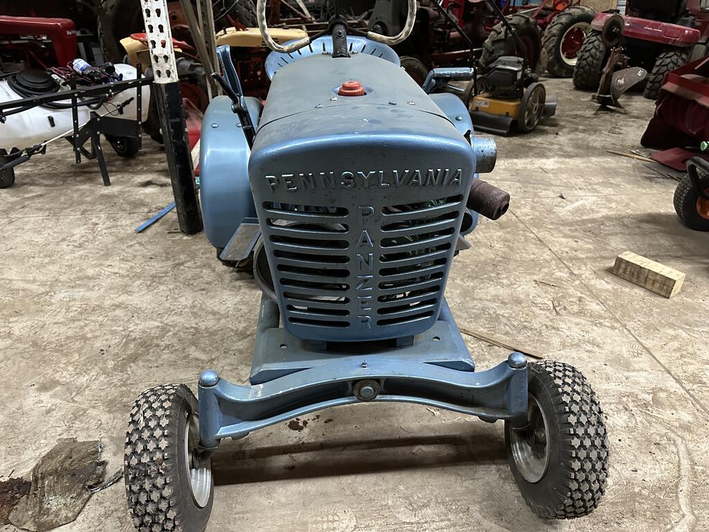 Mrs. P has decided it’s time to sell her panzer. If you don’t know much about these machines, they are absolutely stout! Kohler S/G K-181 engine runs good! The pictures should explain quite a bit, but the drive belt is is very much like a drill press. You move the belt to select which one of the three forward gears you would like to use. You then start the engine, and use the motion control lover to go forward. Reverse moves the driveshaft in, spinning it backwards. this tractor is about twice as heavy as any comparable sized Wheel Horse. Everything is super super super heavy duty. The Mopar rear end still has the factory drum brakes, and they have been modified as turn brakes by Pennsylvania panzer. The rear tires still have the little nubbies on them, somebody did a pretty good restoration to this tractor before we owned it. With the sale, it will have a brand new battery and be in running condition. It has a new coil on it, from the last time we ran it at a show. If you have any questions, please ask!