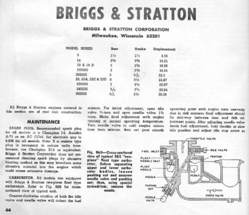 Engine B&S Models 23, 23-B, 23-BC, 23C, 23-FB, 23-FBP, 23-FBPC, 23-P, 23-PC, 23-R6, 23-R6D OM
