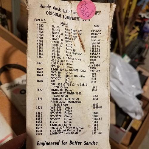 RJ-35 - 1956-57 jack shaft 37" belt 1552 - 4Lx37" or 1/2" x 37" Used with 1556 belt