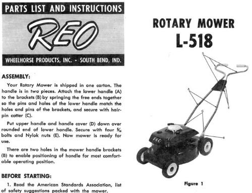 Mower Rotary 18in 1966 Reo Walking Push model L-518