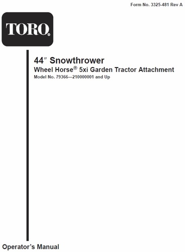 Snowthrower 1994 44in model 79361 Serial 4900001-4999999