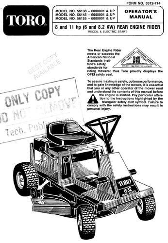 1986 8-32 Rear Engine Rider model 56138 Serial 6000001-6999999 - Recoil start