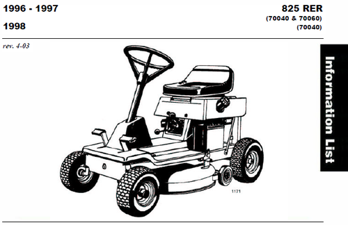 1997 8-25 Rear Engine Rider model 70060 Serial 7900001-7999999 - Export model