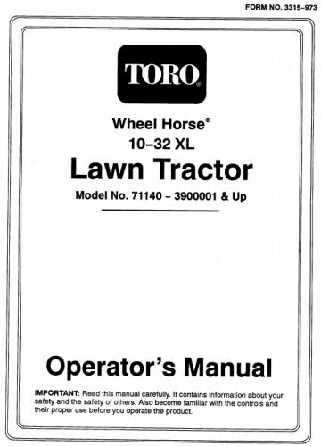 1993 10-32XL Lawn Tractor model 71140 Serial 3900001-3999999