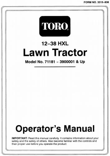 1993 12-38HXL Lawn Tractor model 71181 Recycler Serial 3900001-3999999