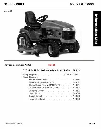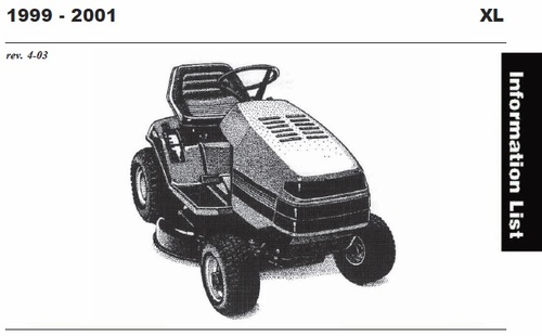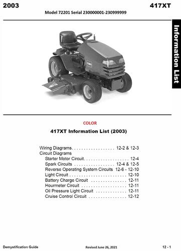 2003 417XT Garden Tractor model 72201 Serial 230000001-230999999