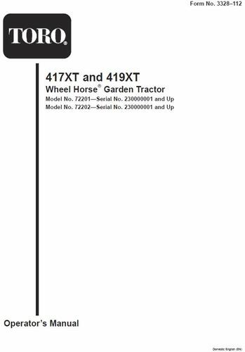 2004 417XT Garden Tractor model 72211 Serial 240000001-240999999 - Export model 417XTe