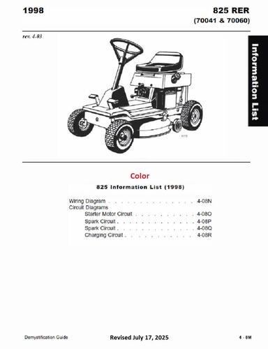 1998 8-25 Rear Engine Rider model 70060 Serial 89000001-89999999 - Export model 8-25e