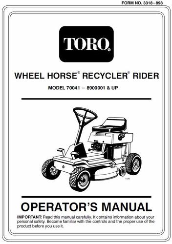 1998 8-25 Rear Engine Rider model 70041 Recycler Serial 8900001-8999999