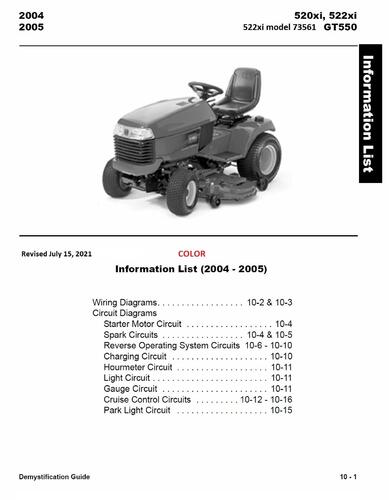 2005 550 5xi-Series Garden Tractor model 73561 Serial 250000001-250999999 - Formerly 522xi