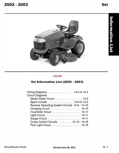 2003 520xi Garden Tractor model 73570 Serial 230000001-230999999 - Export model 520xie