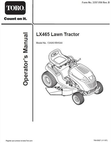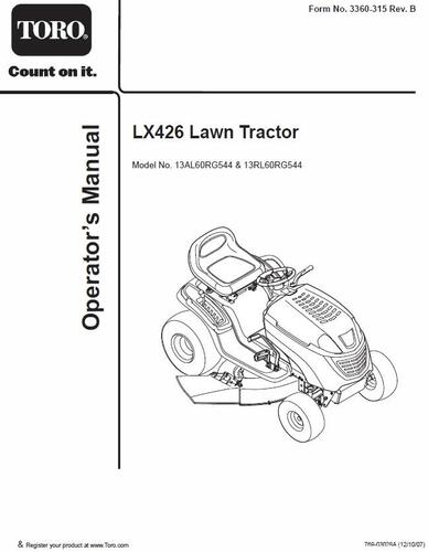 2007 LX425 Lawn Tractor model 13BX60RG544 Serial 1A087H10172-1E237H10144