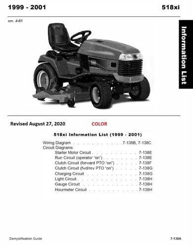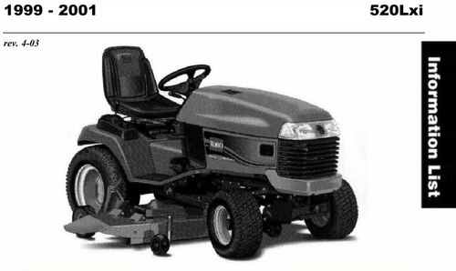 2000 520Lxi Garden Tractor model 73547 A Serial 200000001-200000241