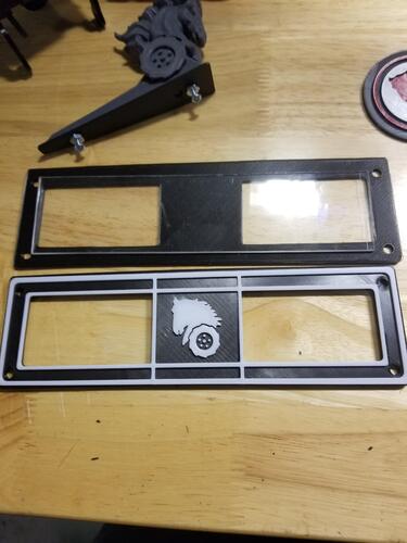 Front bezel and backplate to be used with 1/8 inch plexiglass. Front bezel is of the flat regular design. Can be printed in multi colors with a single filament change.