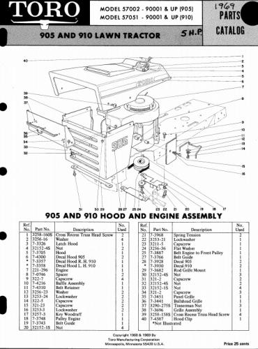 1969 5hp 910 Lawn tractor model 57051 Serial 9000001-9999999 - Uses larger tubeless tires