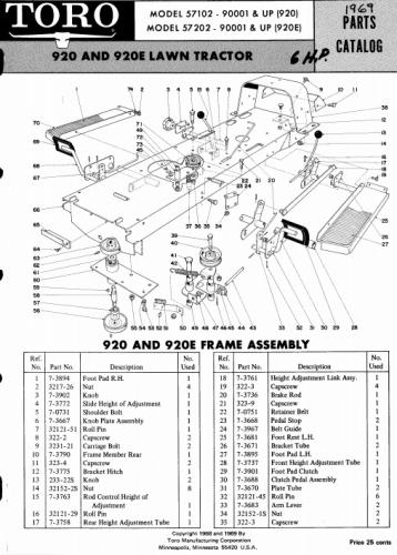 1969 6hp 920 Lawn tractor model 57102 Serial 90001-99999 - Recoil start