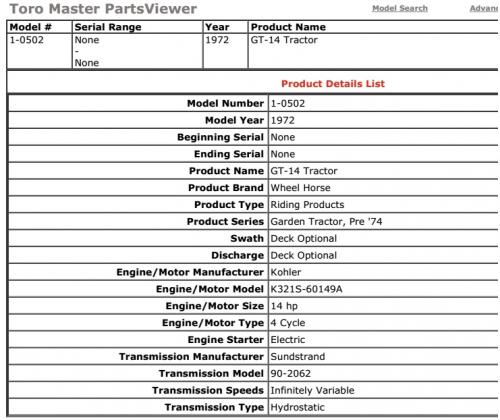 1974 B-100 Auto model 1-0510 (Uses 5090 transaxle with 1" axles)