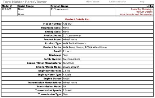 Mower Rotary 1964 21in Walking Self-propelled model 421-LCP
