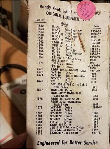 WT-30 - 1960 tiller drive belt 1573 replaced by 1561 - (4Lx30" or 1/2" x 30")