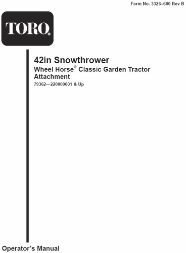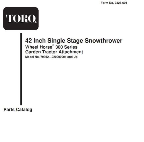 Snowthrower 2002 42in model 79362 Serial 220000001-220999999