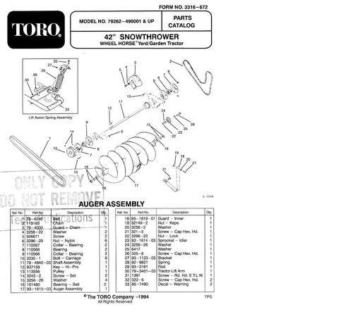 Snowthrower 1994 42in model 79262 Serial 4900001-4999999