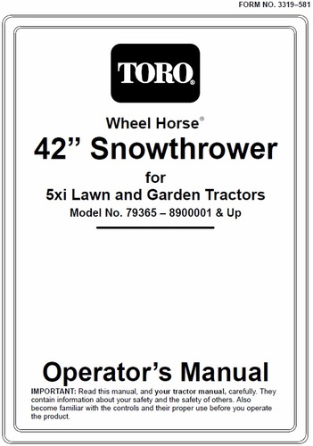 Snowthrower 1998 42in model 79365 Serial 8900001-8999999