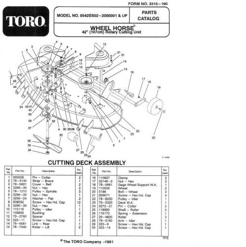 Mower Rotary 1992 42in SD model 05-42SS02 Serial 2000001-2999999