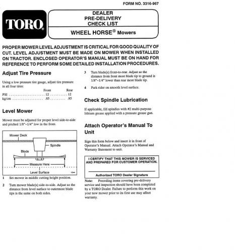 Mower Rotary 1996 42in SD model 78346 Serial 6900001-6999999