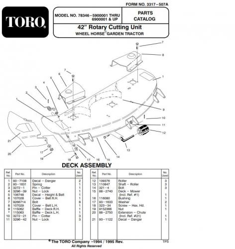Mower Rotary 1995 42in SD model 78346 Serial 5900001-5999999
