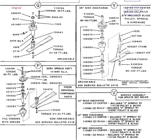 Mower spindle assemblies could be Q, P, V, Y or Z