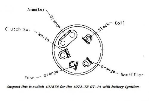Believe 1972-73 GT-14 used battery ignition and Bendix starter with 101876 ignition switch