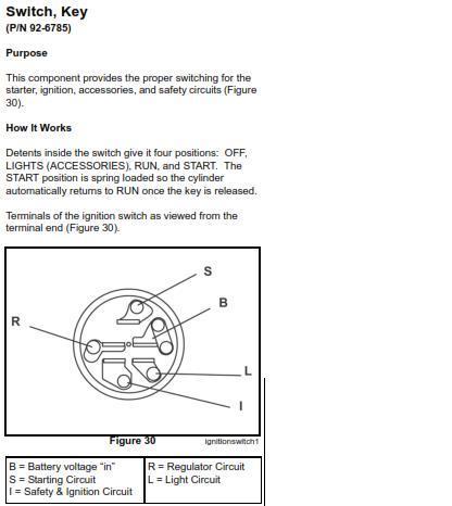 Terminals on 101876 battery ignition switch may not be identified - This switch is no longer available from Toro and appears to be a heavy duty switch designed to take a heavy starter load. The ipl's @ Toro also list a 8658 solenoid so a cheaper alternative switch should be available.