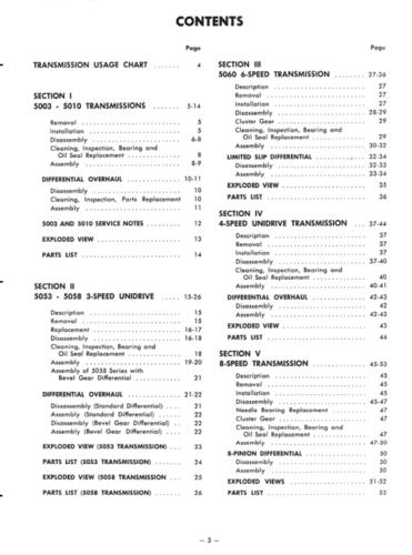 3-Speed transmission models - 5003 (1958-1959), 5007 (1961), 5010 (1960-1961), 5025 (1962-1964), 5046 (1964), 5048 (1965), 5049 (1965), and 5053 (1966-1969)