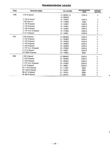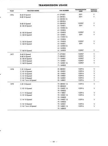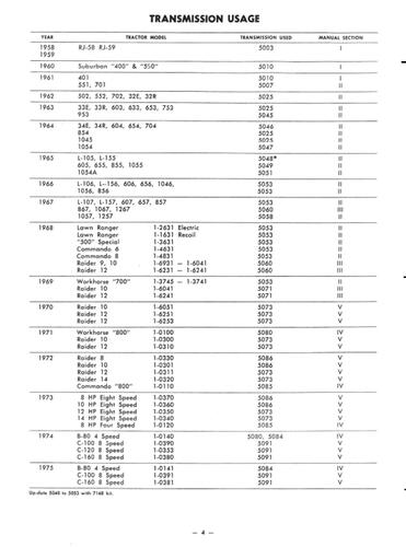 4-Speed transmission models - 5080 (1971), 5084 (1974-1975) and 5085 (1972-1974)