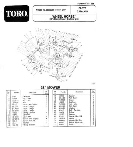 Mower Rotary 1991 38in SD model 05-38SL01 Serial 1000001-1999999