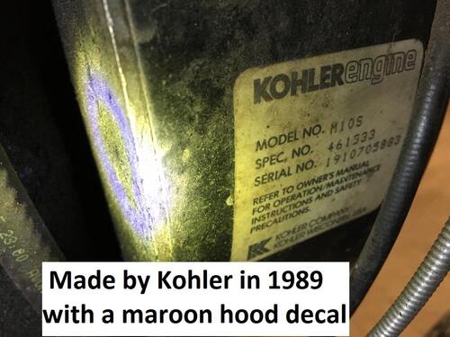 M10-461533 - One found with 1989 Kohler build date and maroon hood decal.