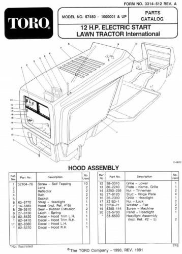 About This File Operator manual #3314-433 Wiring 36 pages 3.9MB Illustrated parts list #3314-512 Wiring 28 pages 5.3MB Details & Attachments 2 pages 105.38KB1991 12-32 Lawn Tractor model 57450 Serial 1000001-1999999 - Export model