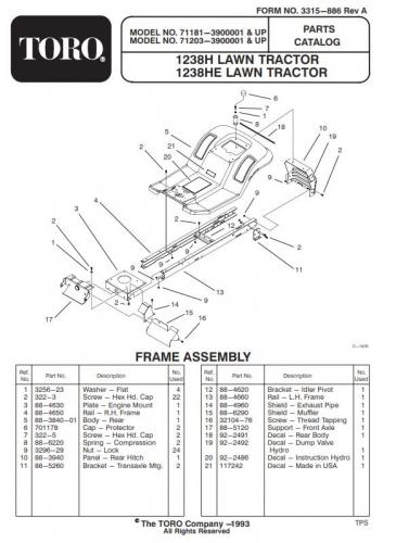 1993 12-38HXL Lawn Tractor model 71181 Recycler Serial 3900001-3999999