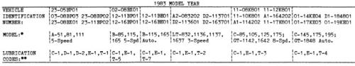 About This File Lube chart SS Details & Attachments 3 pages 116.52KB1983 C- 85 8-Speed model 11-08K801 1983 serial numbers that have shown up for the 11-08K801 26176