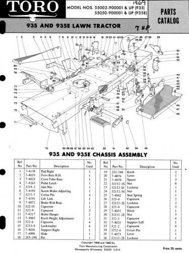 1969 Toro 935 Lawn Tractor model 55002 Serial 90001-99999 - Recoil start