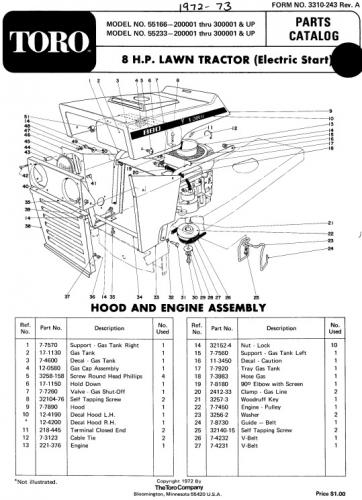 1972 8hp 880 Lawn tractor model 55166 Serial 200001-299999 - Electric start 3-speed