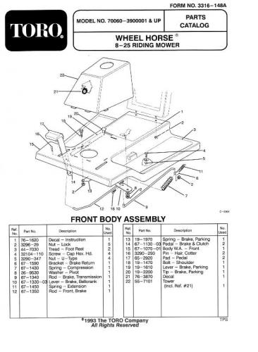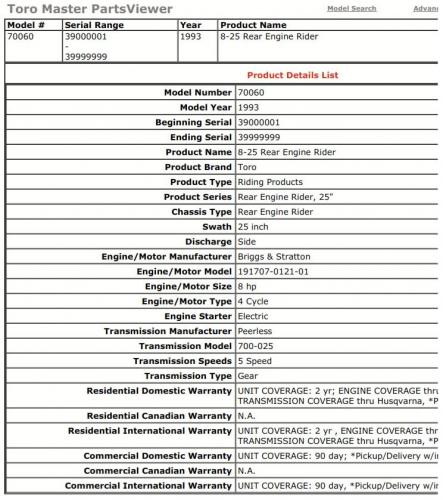 1993 8-25 RER model 70060 Serial 3900001-3999999 - Export model