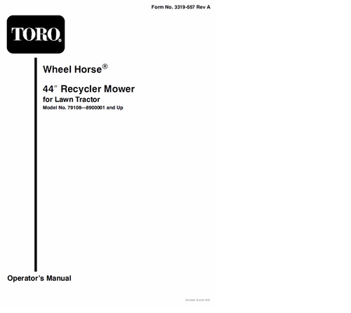 2000 Recycler mower 44in side discharge model 79108 Serial 200000001-200999999