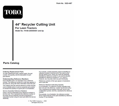 2001 Recycler mower 44in side discharge model 79108 Serial 210000001-210999999