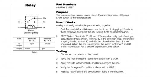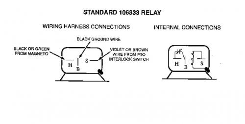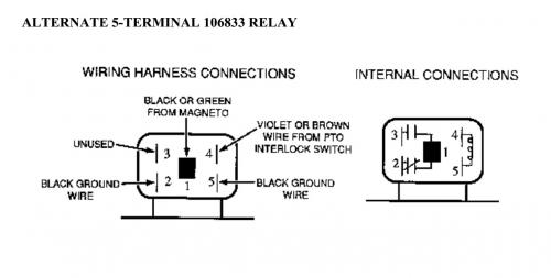 106833 3-terminal relay replaced by a 5 terminal substitute in production because of a parts shortage.