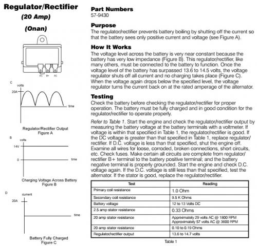 About This File Taken from #492-4509 Electrical Manual NN10261, 57-9430 replaced by 117-2742 20 amp Onan Regulator/Rectifier